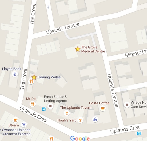 The Hearing Centre in Uplands, Swansea is fortunate to have plenty of free parking spaces outside (although we recommend you check the time restrictions to make sure you are covered!). From time to time it can be busy and you may not be able to find a space. You can either ‘go around the block’ to try again, or you can park in The Grove Medical Centre Pay and Display Car Park. All of our customers can have the full value of their parking ticket refunded at reception on arrival for their appointment. Please see the map below: